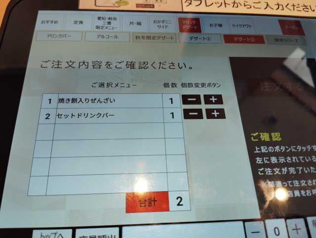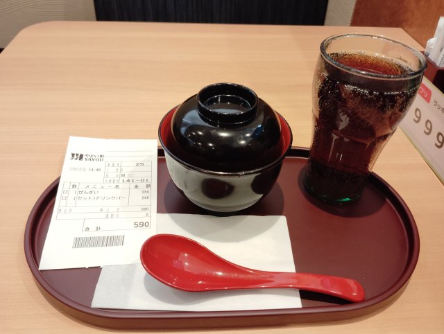 ぜんざいとドリンクバーを注文した。