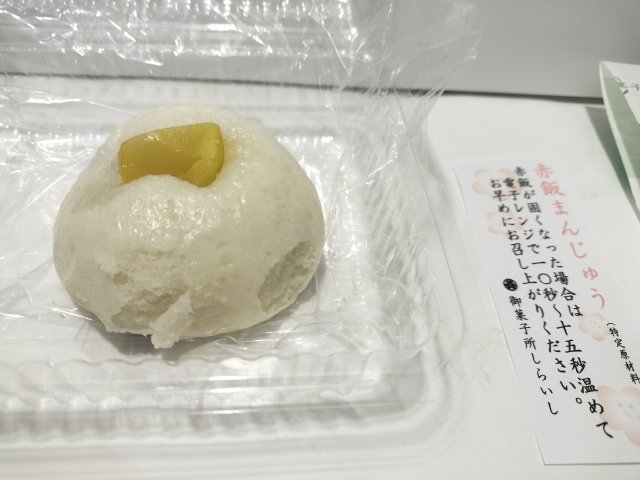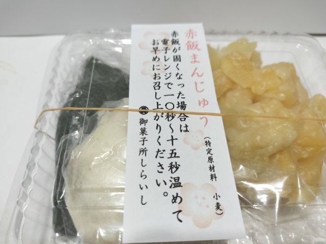 赤飯まんじゅうは、まんじゅうの中身に餡子のかわりに赤飯が入っている。