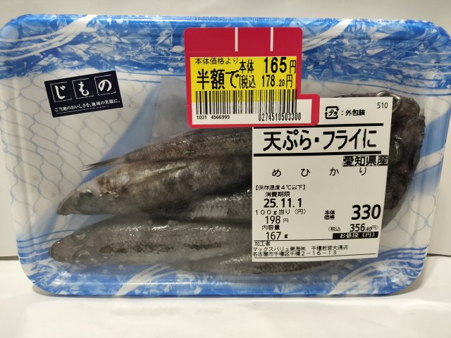 メヒカリ(深海魚)を煮付けにして食べてみた コメントを残す メヒカリ(深海魚)を煮付けにして食べてみた。(ちょっと前に買ったのだが、blogに書き忘れていた。) マックスバリュでメヒカリが売っているのを見かけたので、買ってみた。以前に何度か大府の産直や蒲郡の深海魚まつりなどで売っているのに遭遇しているのだが、長時間の持ち帰りができる用意が無くて買えてなかった。今回は割と近所なので買ってすぐ持ち帰りできた。 唐揚げにするのが定番らしいのだが、揚げ物はちょっと面倒なので煮付けにした。頭とハラワタを取り除いて、醤油とみりんで煮る。 美味しかった。
