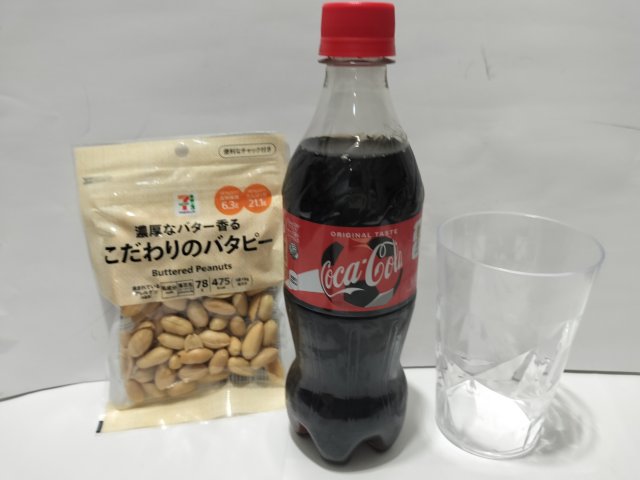 コーラに入れるならば、バター無しの塩だけのソルトピーナッツのほうがよいのかもしれない。