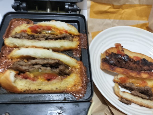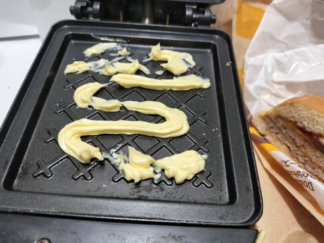 しかし、上下の加熱プレートにチーズが焦げ付いてくっついてしまい、ばらばらになってしまった。