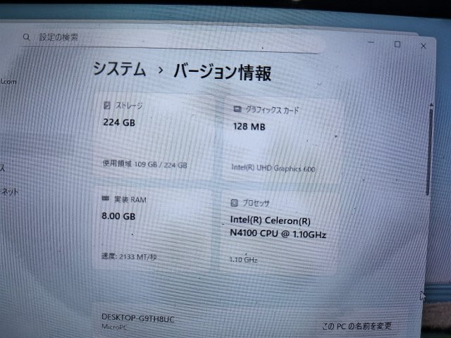 CPUは第1世代Core i3なので当然Windows11非対応のPCだ。