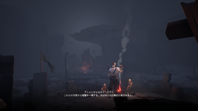 光を失った世界で、光を取り戻す神ASHENが復活し、主人公達は新しい世界で活動し、拠点を作り周囲を探検していく。