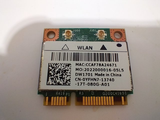 WLANカードは、DELL DW1701というものが載っていた。Broadcomのチップが使われているもので、前に似たようなもの(DW1397)を使ったときUbuntuで使えなかったりWindows10/Win11で動いたり動かなかったりして動作が怪しかった。このDW1701もUbuntuとWindows10で動いたのだが、Win11で動かなかった。
