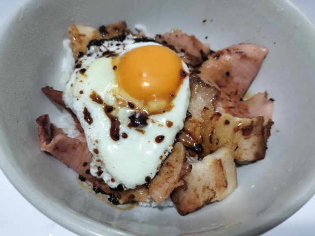 作り方は割と簡単だ。(要するにチャーシューと目玉焼きをごはんに乗せるだけのチャーシューエッグ丼みたいなものだ。)