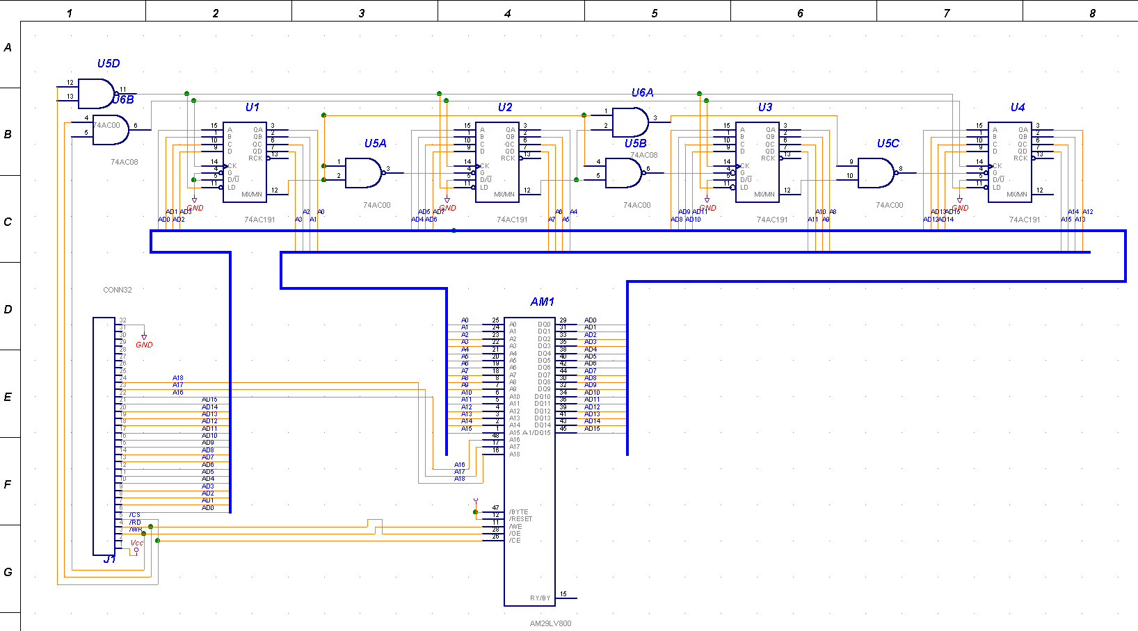 当初は、これで上記の回路と同等の回路をCPLDで作り込もうと計画していた。CPLDの入門用に丁度良い題材に思える。