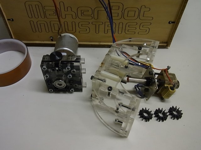 もともと組み付けてあった正体不明の緑色のExtruderを取り外して、Plastruder MK5というExtruderを取り付けた。(2013-03)