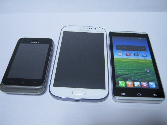 SonyのXperia TIPOと、SamsungのGalaxy Grand DUOSと、coviaのCP-F03a